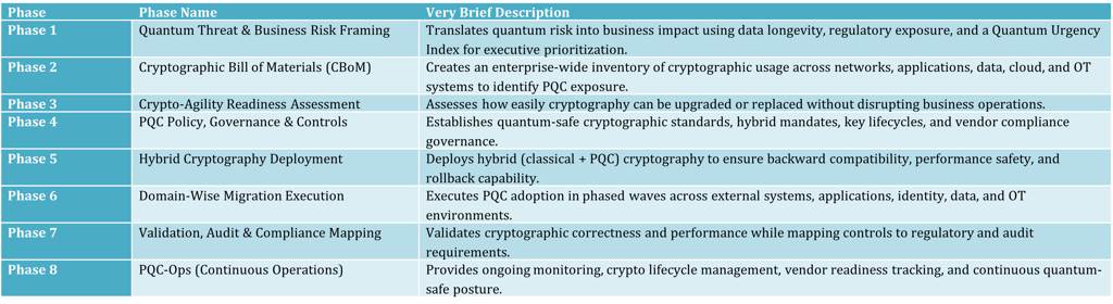 Together, these eight phases provide a controlled, risk-led, and operationally safe path to post-quantum-ready digital infrastructure